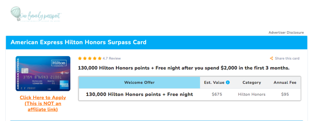 - (6x the points are great! However, keep in mind that Hilton points are valued less than Chase or Amex points)