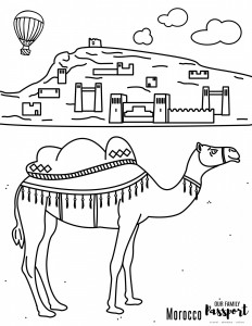 Hello, Friends! We recently returned home from Morocco and couldn’t wait to get started on creating our Morocco coloring pages. We love how these African coloring pages accurately show what we experienced on our travels. One of our favorite things we saw in Morocco and something we incorporated into this page happens to spit and carry large amounts of water in its humps for long desert treks… can you guess it? That’s right! The handsome camel. This camel coloring page will inspire your children to learn about the unique animals, culture, and landscape of Morocco while also fulfilling their fun and creative needs.