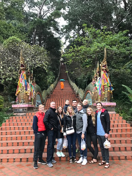 This impressive temple is visible from Chiang Mai high atop a mountain outside of the city. The temple is often referred to as “Doi Suthep” although that is actually the name of the mountain it is located on. If you have been in Thailand awhile and are feeling a little “templed out” you STILL have to see it. This is a must do and was one of our favorite things to do while in Chiang Mai. We too saw LOTS of temples in Thailand but this one is special. Our guide told us that if you have been to Chiang Mai but have not seen this temple, then you really haven’t been to Chiang Mai. To the residents of Chiang Mai, it is a holy place.