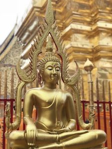 You must not have bare shoulders or any clothing above the knee or you will not be permitted into temples and other sacred sites. Thai people are serious about their modesty… my daughter was asked to cover up while riding a bike in her one-piece swimsuit (and she was not in a sacred site). . . So you will want to be prepared with proper attire.