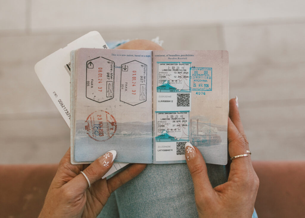 Travel blogger holding passport ready to book a flight with credit card points